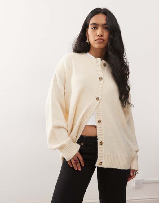 COLLUSION oversized crew neck cardi in cream