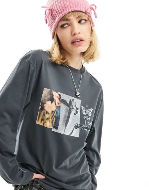 COLLUSION oversized graphic long sleeve t-shirt in grey