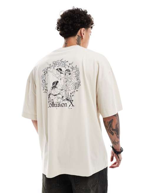 COLLUSION oversized t-shirt with fairy graphic in stone