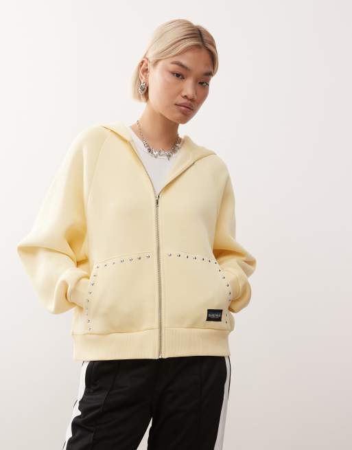COLLUSION oversized zip through hoodie with stud detail in buttermilk