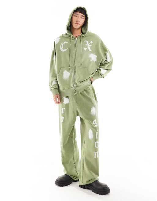 COLLUSION Paint splat zip through hoodie in khaki co-ord