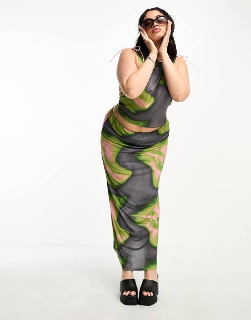 COLLUSION Plus abstract printed maxi skirt in multi