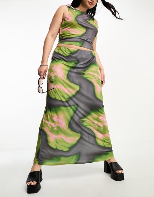 COLLUSION Plus abstract printed tie vest and skirt in multi