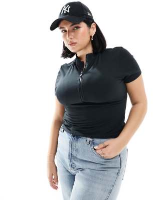 COLLUSION Plus funnel neck cap sleeve top in black