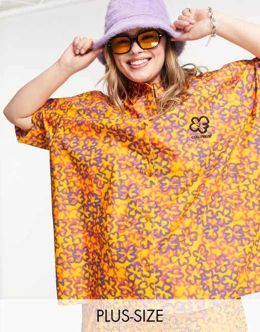 COLLUSION Plus poplin shirt in abstract floral print co-ord