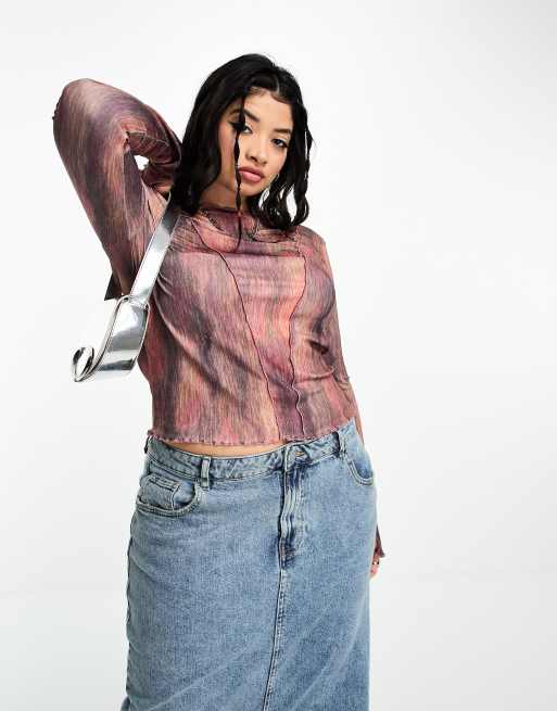 COLLUSION Plus printed exposed seam long sleeve top in multi