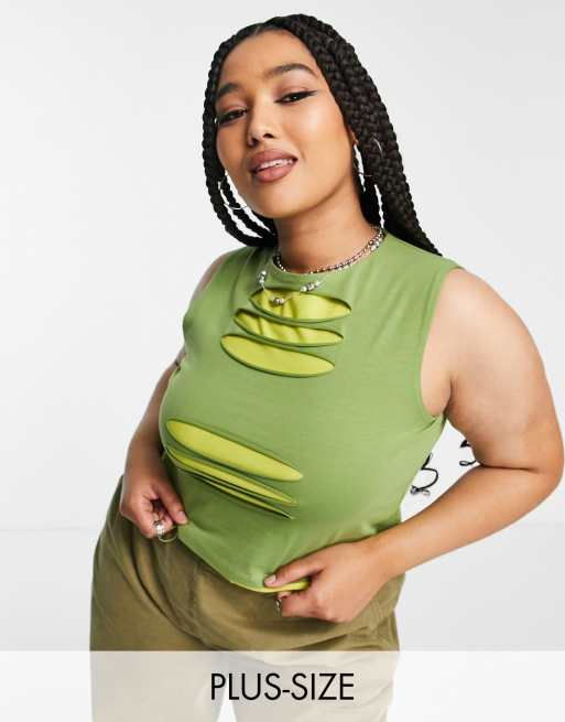 COLLUSION Plus slash contrast vest top in green