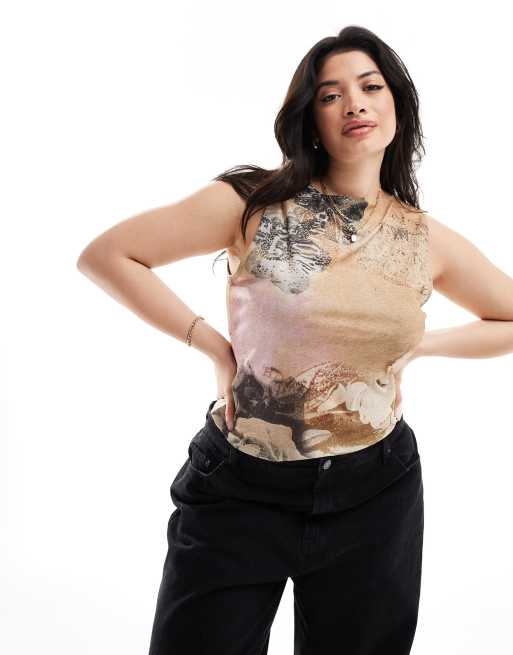 COLLUSION Plus slash neck printed vest in multi