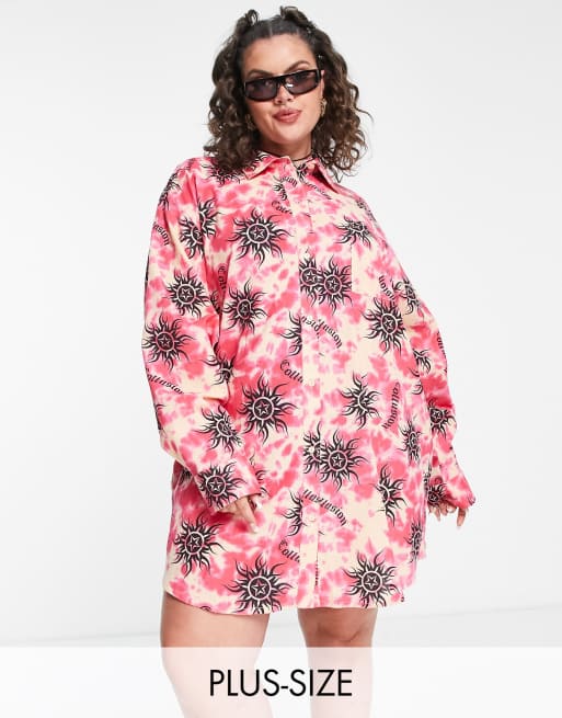 COLLUSION Plus tie dye sun print shirt dress in pink