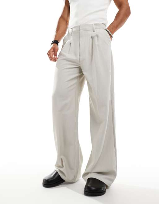 COLLUSION relaxed wide leg tailored trousers in stone