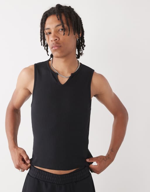 COLLUSION Ribbed vest in black with notch