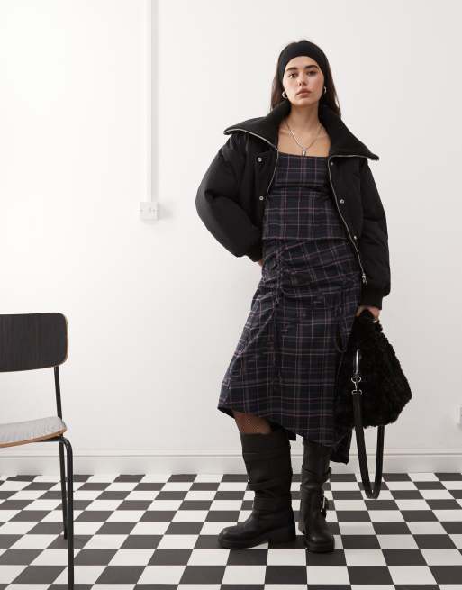 COLLUSION ruched detail cut out midi skirt co-ord in multi check