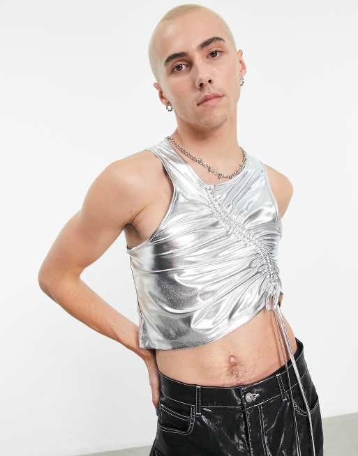 COLLUSION ruched detail vest in silver metallic