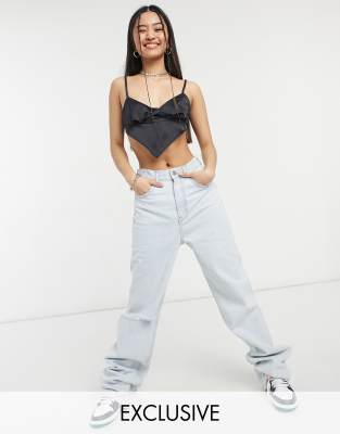 COLLUSION seamed cup 90's satin scarf top in black