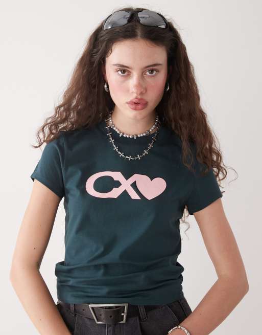 COLLUSION short sleeve shrunken CX branded tee in dark green