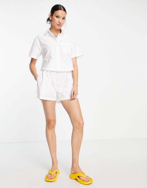 COLLUSION shorts with brodiery co-ord in white