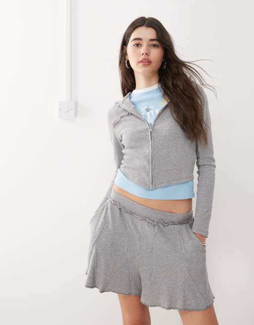 COLLUSION shrunken grey marl hoodie co-ord