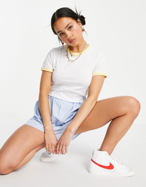 COLLUSION shrunken ringer tee & PE short with binding co-ord in yellow