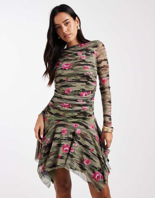 COLLUSION slinky rose printed asymmetric mini dress