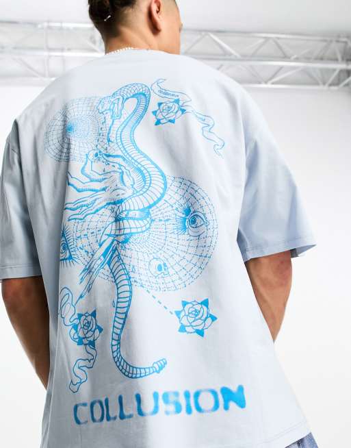 COLLUSION snake print short sleeve t-shirt in washed blue