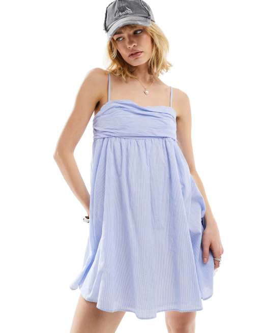 COLLUSION spaghetti strap volume mini sun dress in blue stripe