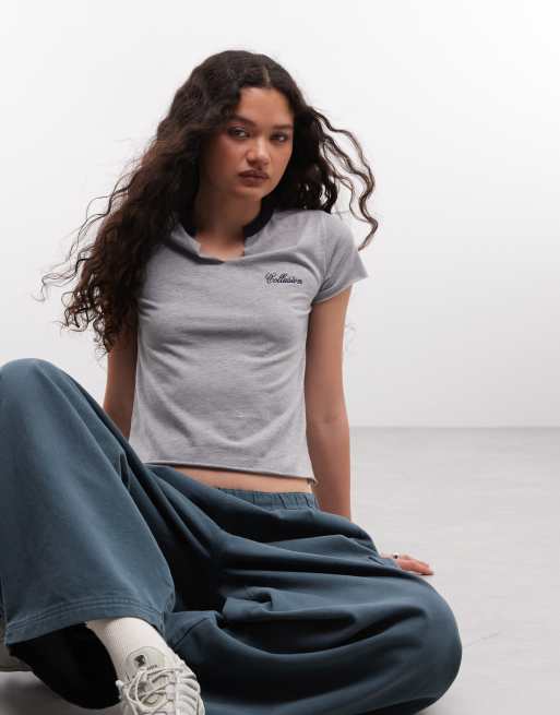 COLLUSION split neck baby tshirt in grey marl