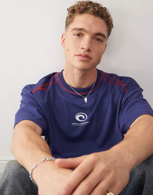 COLLUSION Sports contrast stitch logo tee in blue
