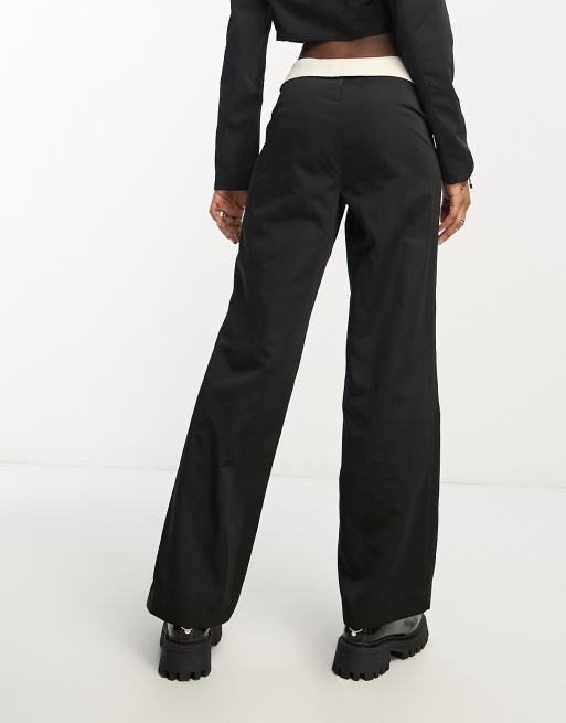 COLLUSION straight leg trousers with fold over detail in black co-ord
