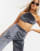 COLLUSION super wide velvet flares & hankerchief top co-ord