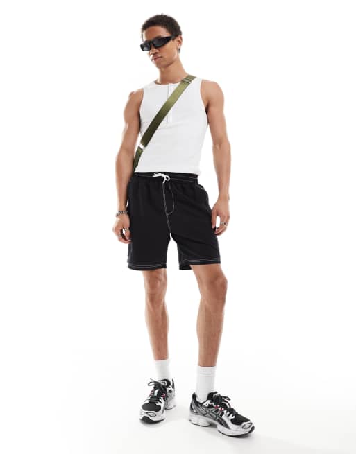 COLLUSION swim short with contrast stitch in black