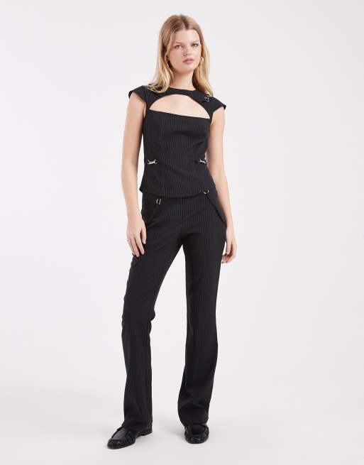 COLLUSION tailored pinstripe buckle trouser co-ord in black