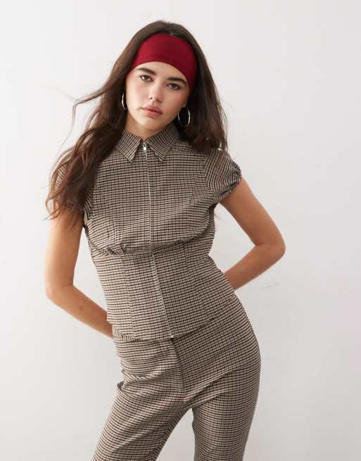 COLLUSION tailored zip front check shirt co-ord in multi