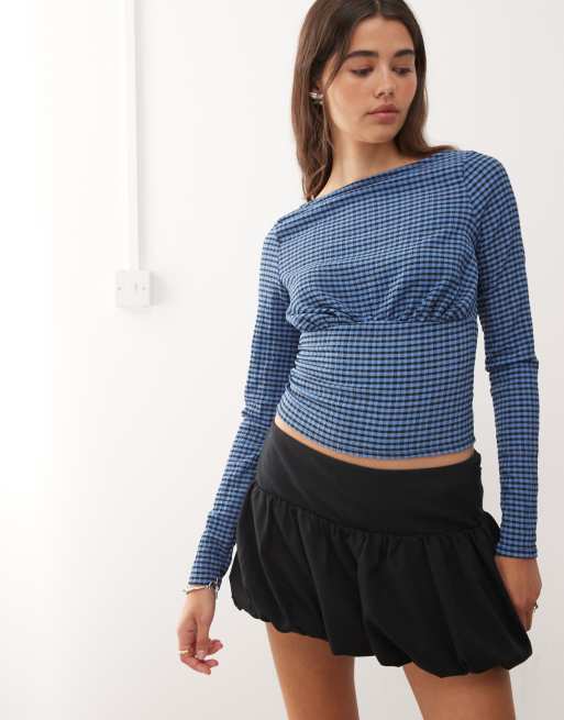 COLLUSION textured gingham slash neck in blue check