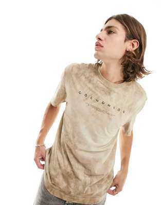 COLLUSION tie dye logo t-shirt in brown