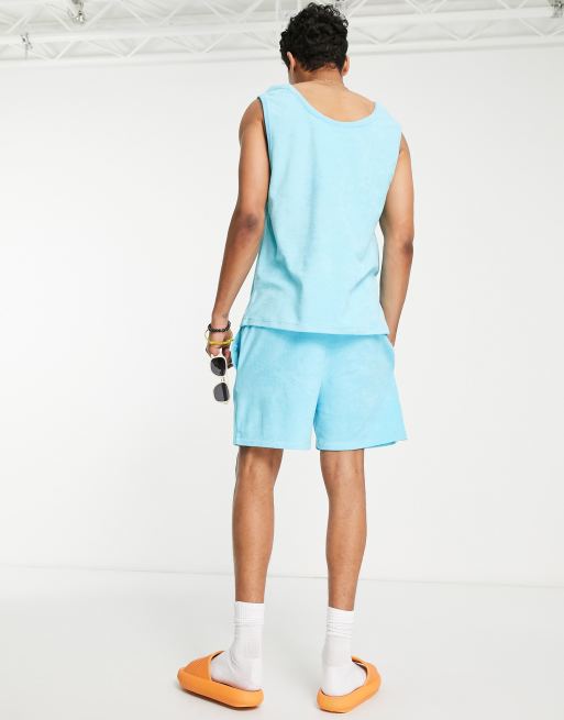 COLLUSION towelling short co ord in aqua blue