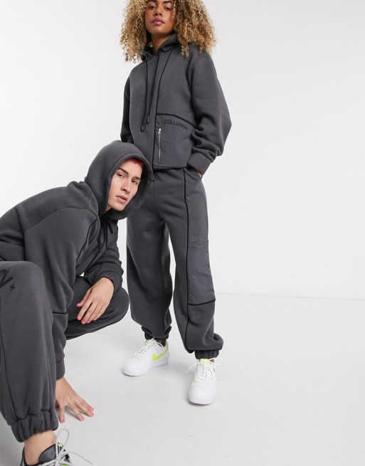 Collusion tracksuit with nylon pocket and stitch detail