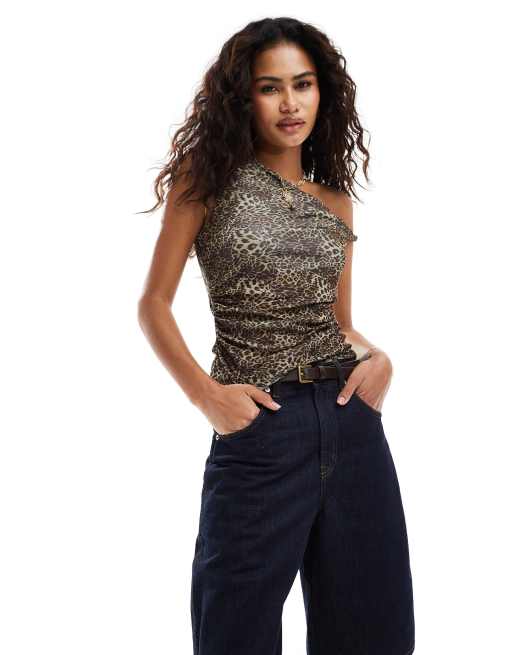 COLLUSION twist detail off the shoulder top in animal print
