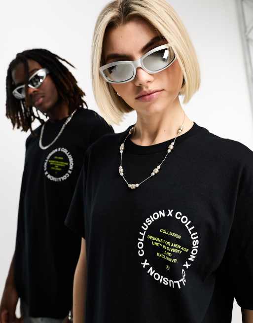 COLLUSION Unisex branded t-shirt in black