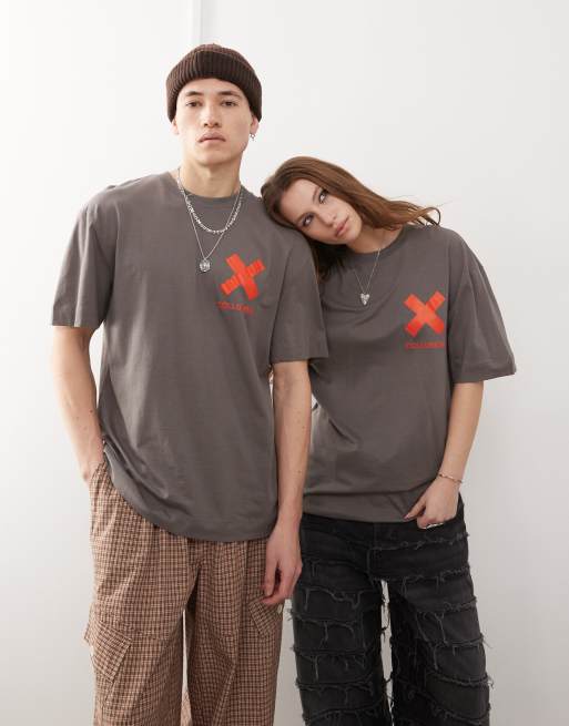 COLLUSION Unisex charcoal t-shirt with X logo in orange