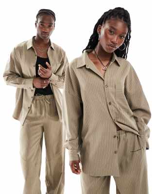 COLLUSION Unisex co-ord oversized shirt in brown pinstripe