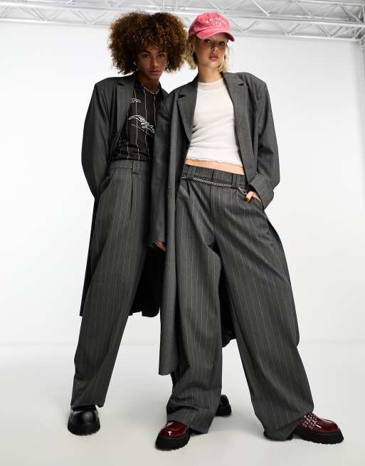 COLLUSION Unisex co-ord tailored trouser in grey pinstripe