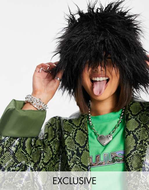 COLLUSION Unisex extreme faux fur bucket hat in black
