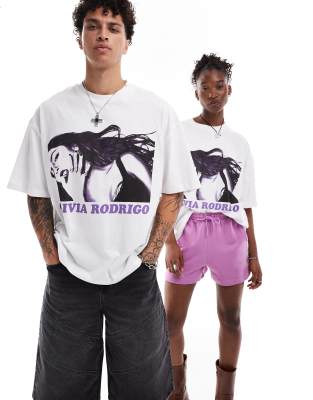 COLLUSION Unisex festival official license oversize Olivia Rodrigo 'GUTS' t-shirt in white