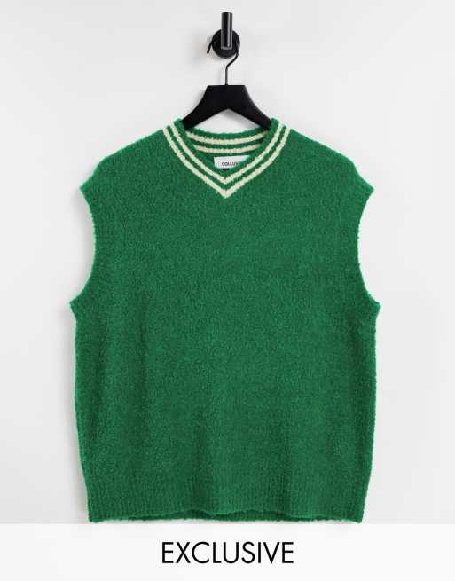 COLLUSION Unisex knitted high v neck vest in green