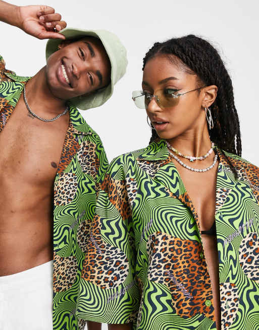 COLLUSION Unisex leopard print short sleeve revere shirt in multi