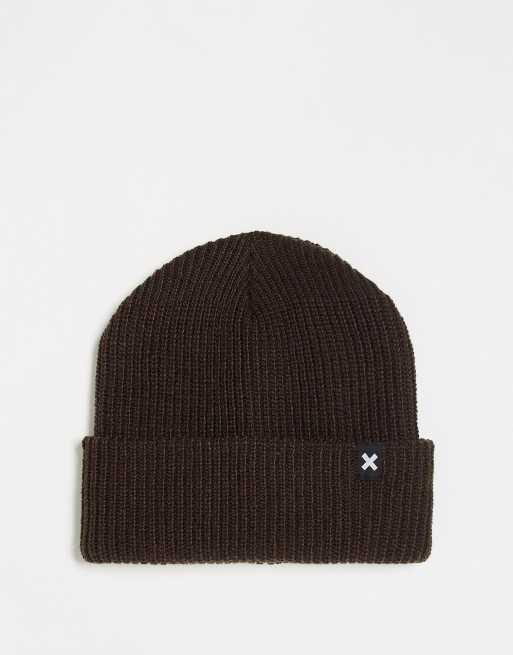 COLLUSION Unisex logo beanie in chocolate brown - BROWN