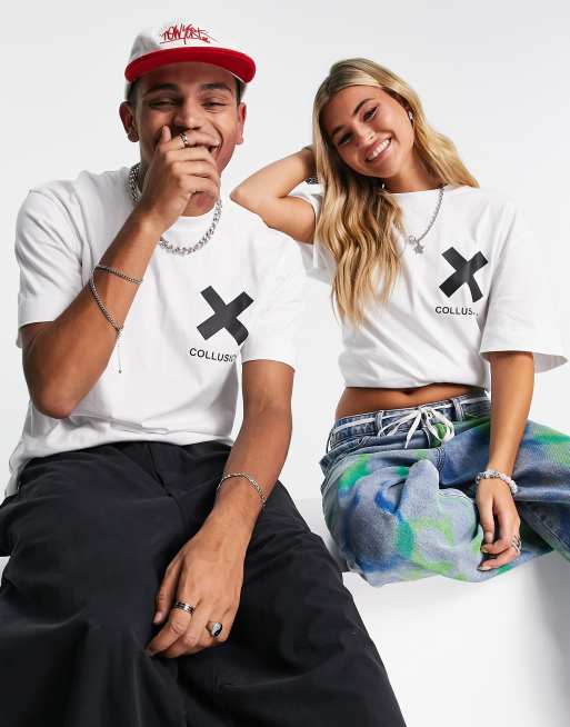 COLLUSION Unisex logo cotton t-shirt in white - WHITE