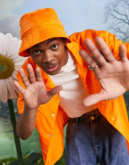 COLLUSION Unisex nylon bucket hat in orange co-ord