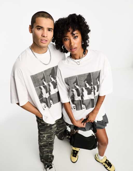 COLLUSION Unisex photo polaroid front print oversized t-shirt in white