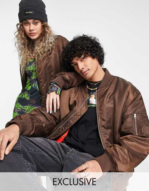 COLLUSION Unisex polyester bomber jacket in brown - RED
